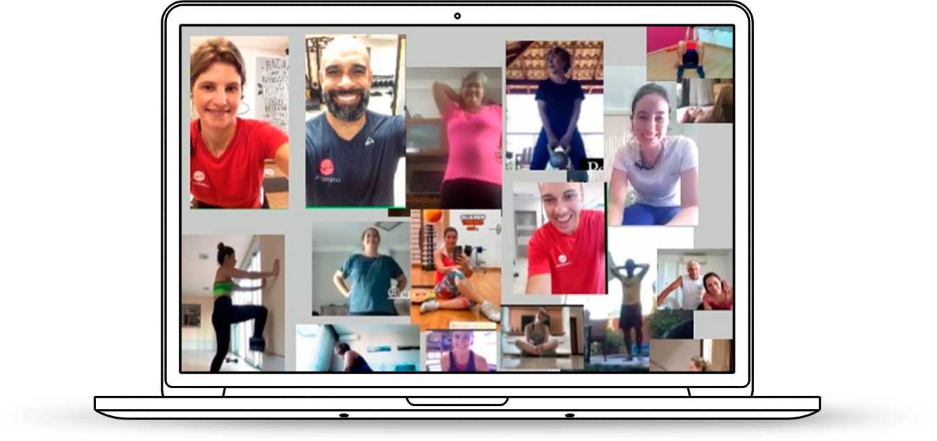 São treinos personalizados, ao vivo e com horário agendado. As restrições e objetivos de cada aluno são considerados na montagem do treino que é individualizado. O aluno escolhe os dias e horários em que pretende treinar. As sessões são de 40 minutos pela plataforma Zoom. Os planos de adesão são de acordo com a frequência semanal, podendo ser 3 ou 5x/semana. Turmas: 7:20h, 8h, 8:40h, 11h, 17h, 17:20h e 18h.